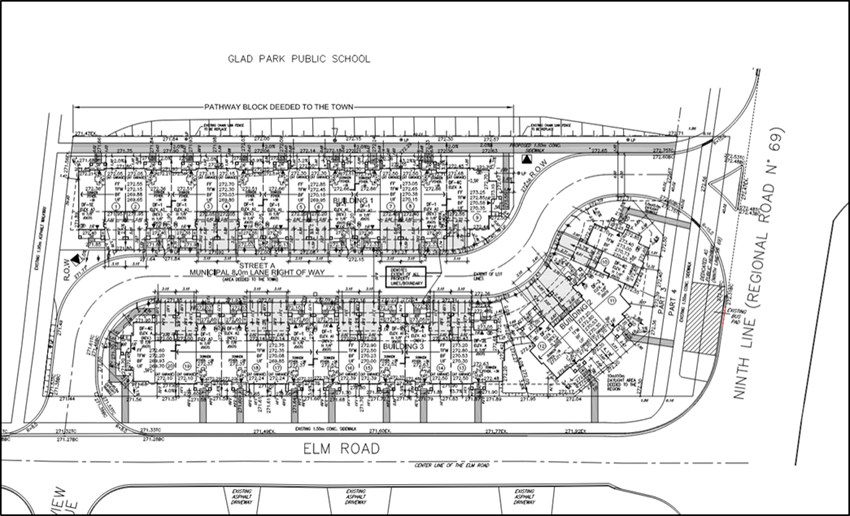 - A new municipal street is proposed to provide vehicular access with connections from Ninth Line and Elm Road.